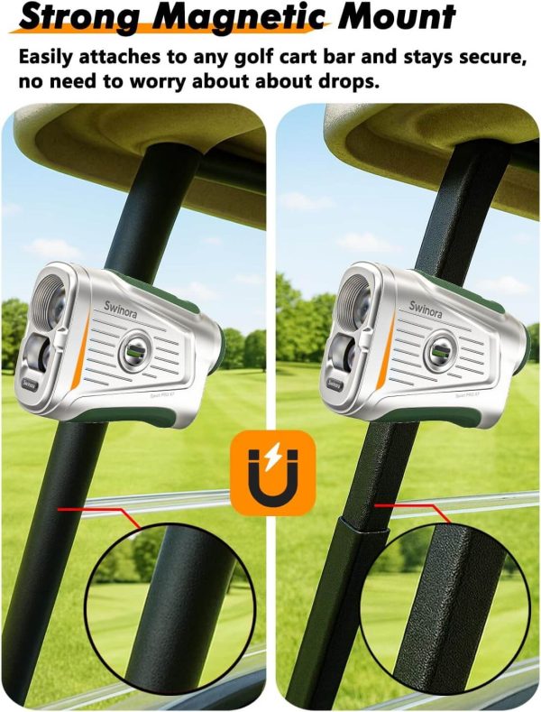 - 【Upgraded Magnet Mount】A reinforced magnetic strip securely attaches the rangefinder to your cart or clubs—even on bumpy paths. Grab it with one hand, shoot, and reattach instantly. No straps, no clips, no hassle—just fast access every time