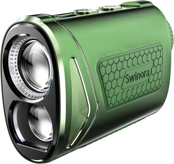 Swinora Golf Rangefinder with Slope – 1300 Y Golf RangeFinder, Flag Lock Vibration | 7X Zoom, Strong Magnet Mount (Green)