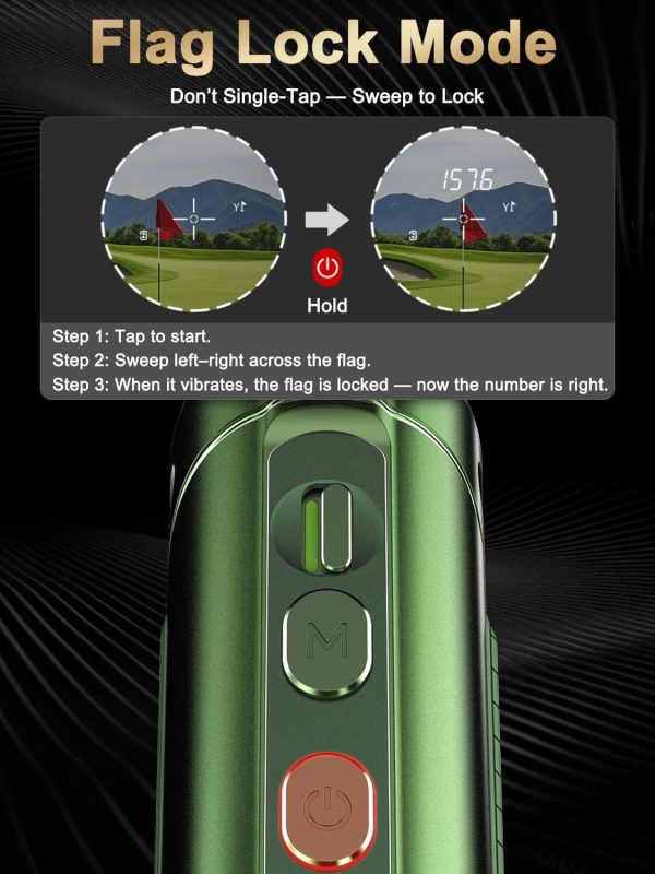 • 【Flag Lock Mode】Lock onto your target in just 0.5 seconds and feel the vibration feedback for a fast and accurate read within 250 yards. Long-press for stable scanning and precise flag locking, minimizing hand-shake errors for consistent accuracy.